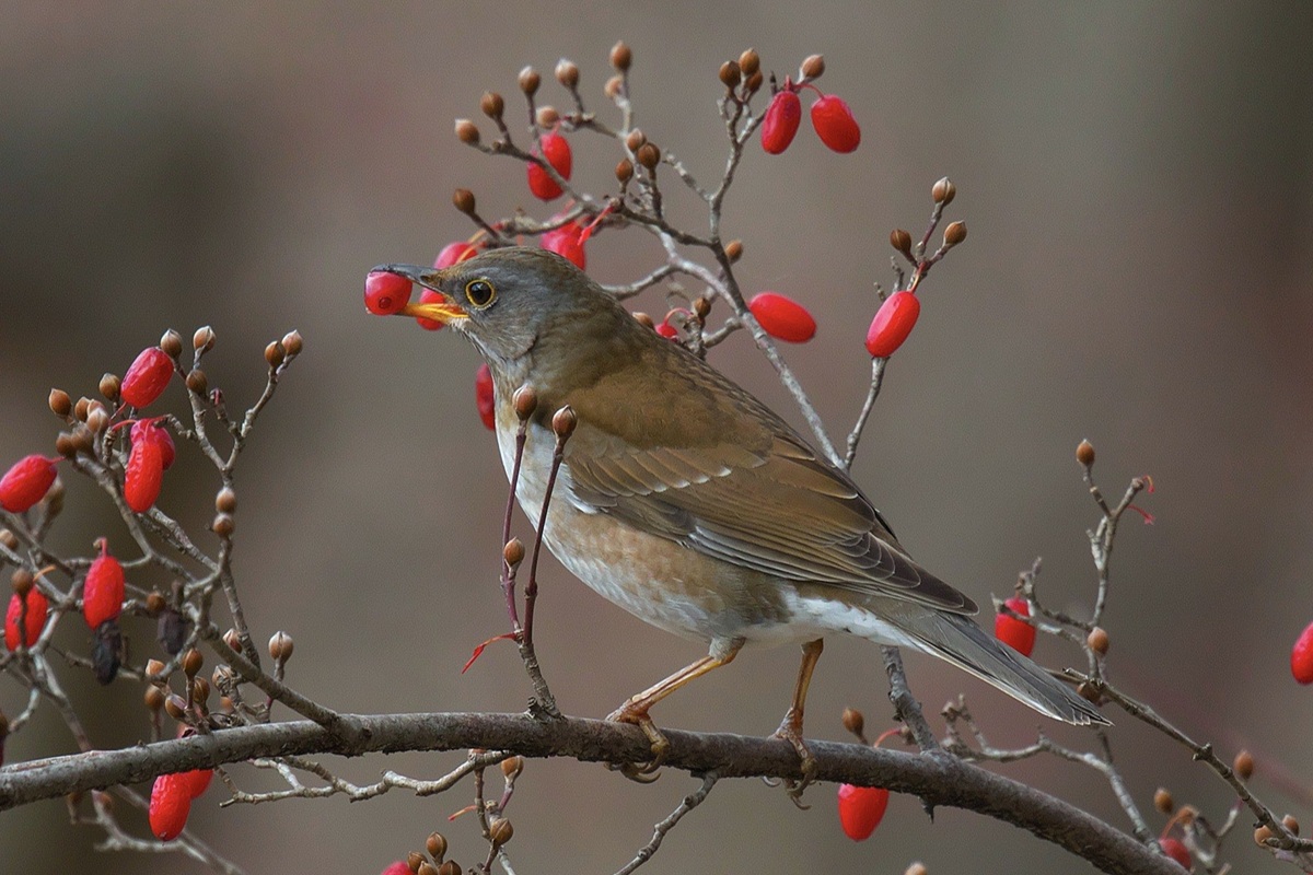 春の渡りはツグミよりも遅くに始まり、渡りの直前には「ポピョリン、ポピョリン」とアカハラに似た声でさえずる(動画①参照)。